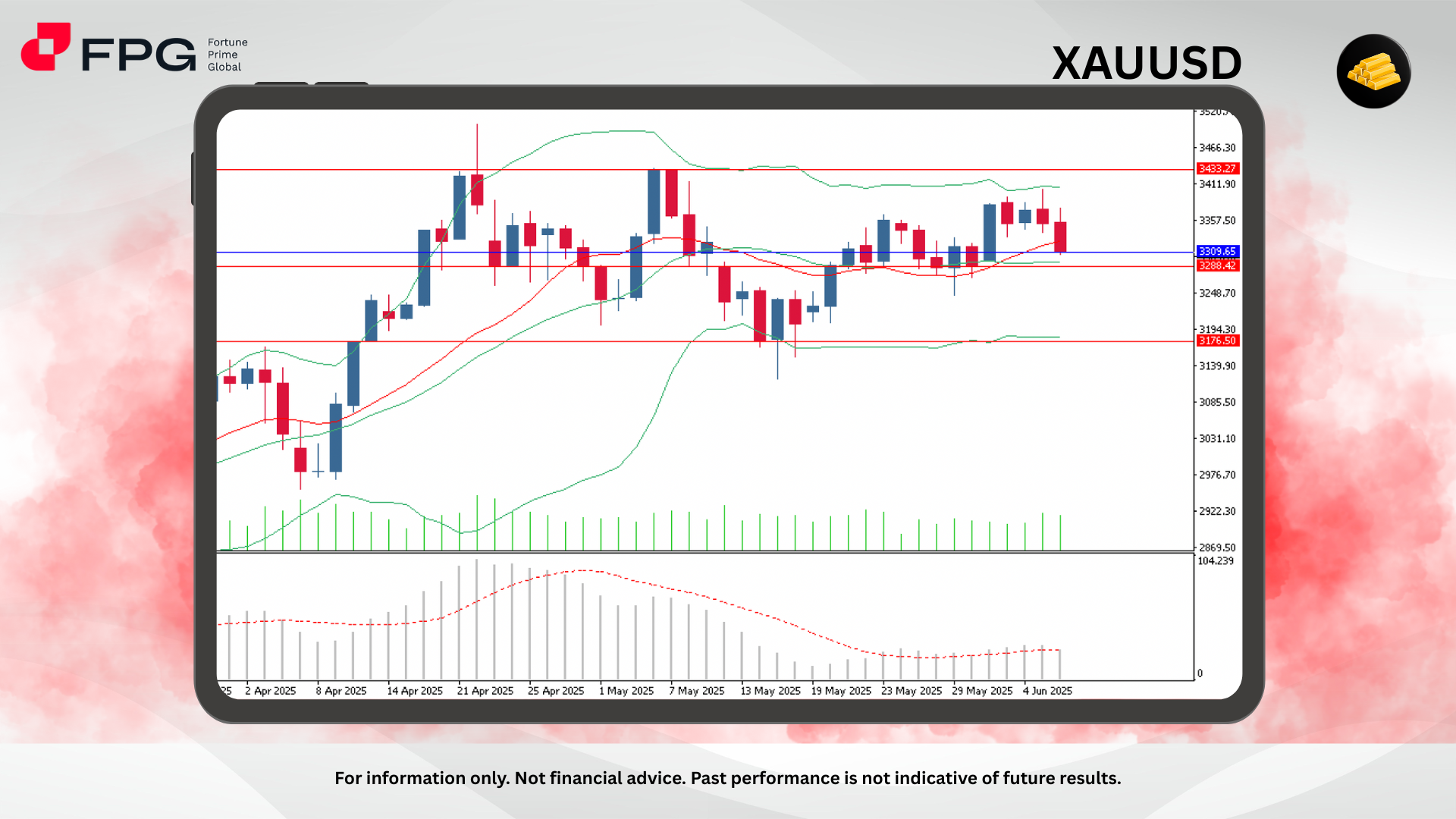 XAUUSD traded around 3309.65 today, sliding lower after failing to sustain upside momentum near 3357. Price is now testing the confluence support at 3288.42, and a breakdown could expose further weakness in gold. The recent choppy consolidation highlights indecision amid lingering bullish bias.